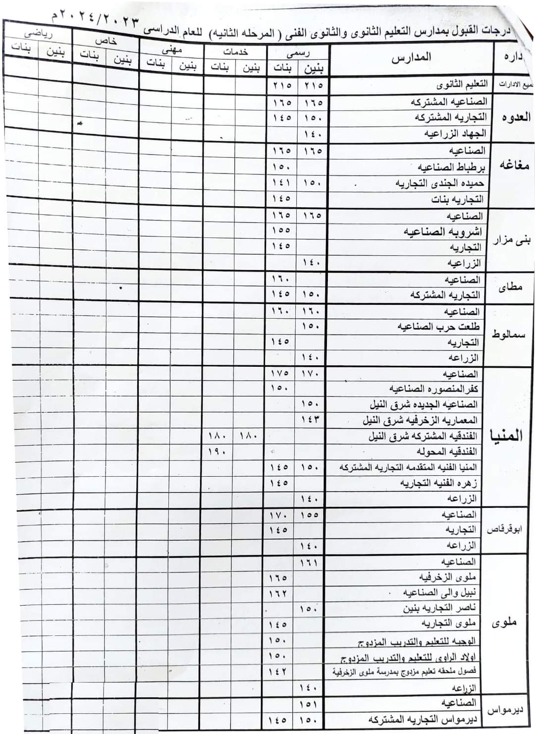 محافظ المنيا يوافق على تخفيض درجات القبول ببعض مدارس التعليم الثانوي العام والفني