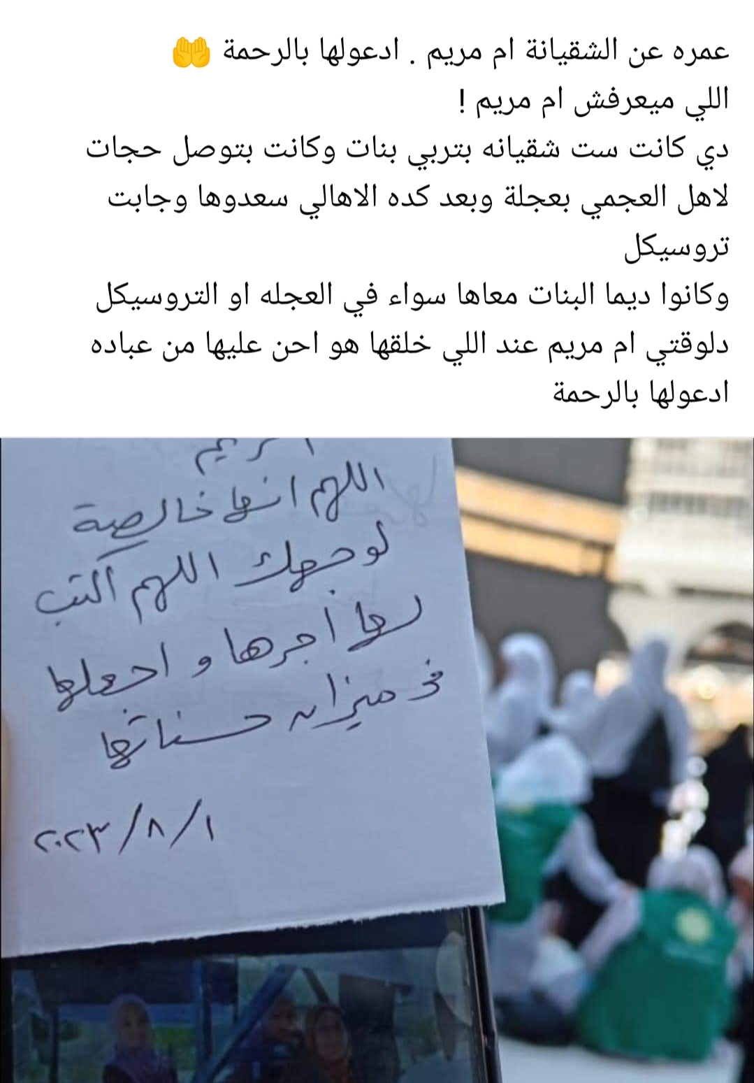 وفاة أم مريم سيدة التروسيكل بالإسكندرية