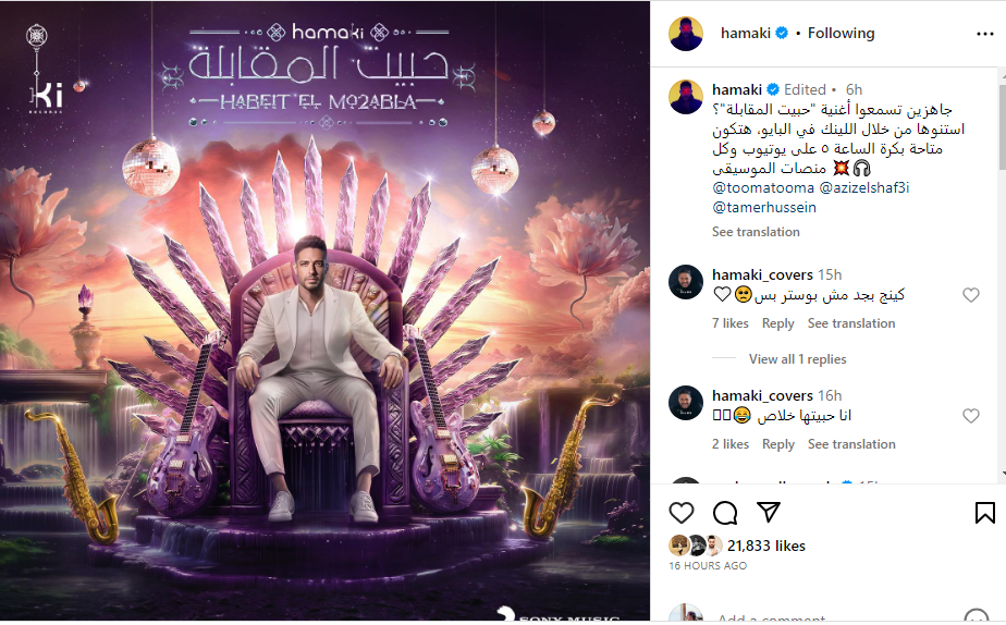روج محمد حماقي، لأغنية حبيت المقابلة، عبر حسابه الرسمي بموقع انستجرام، حيث شارك متابعيه بوستر الأغنية وعلق عليها قائلًا: جاهزين تسمعوا أغنية حبيت المقابلة، استنوها من خلال اللينك في البايو، هتكون متاحة بكرة الساعة 5 على يوتيوب وكل منصات الموسيقية.