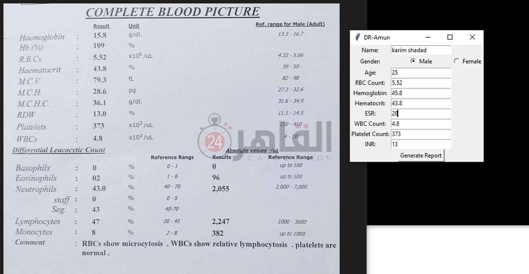 وأوضح الطالب، أن الروبوت سيكتفى بأن يضع المريض الإصبع على المستشعر لـ إظهار المرض مثل درجة حرارىة الإنسان، ويمكنه استخراج تقرير مفصل عن الدم بصورة كاملة لتحديد بعض الأمراض كـ الأنيميا، ويمكنه الكشف عن الأمراض الوراثية أيضًا مثل السكر، ومرض ضمور النخاع الشوكي.
