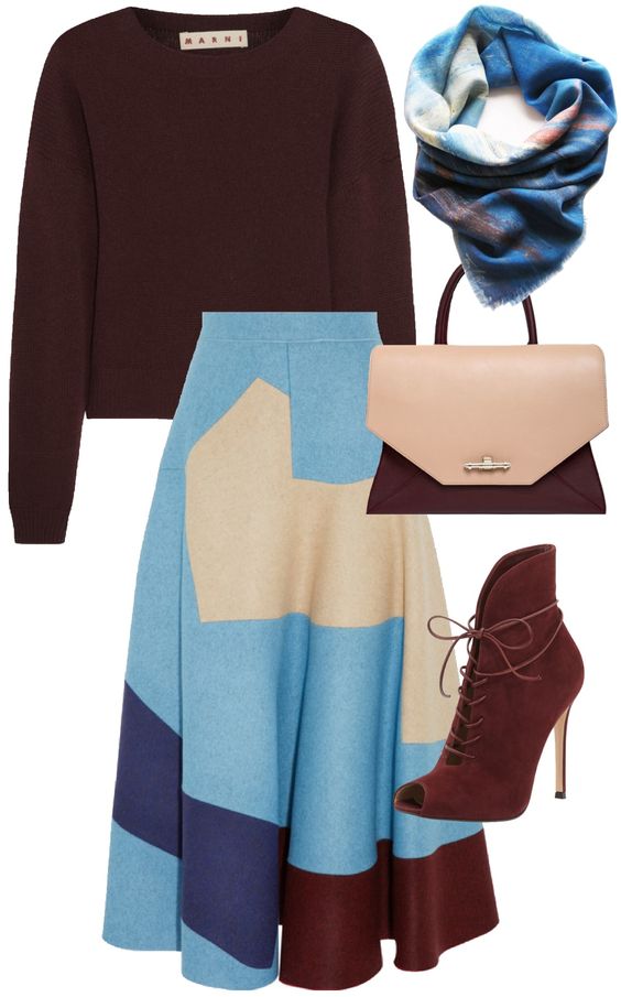 اللون المناسب مع البني في الملابس يكون من درجات اللون المخملية والألوان الهادئة، كما تقبل بعض درجات البني الألوان الصاخبة والصريحة، إلا أنه يمكن تنسيق اللون البني كالتالي: