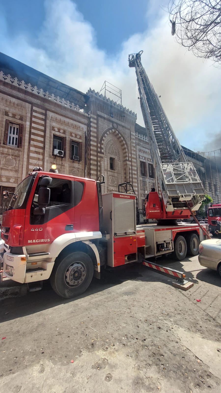 أشرف اللواء خالد عبد العال محافظ القاهرة على أعمال إطفاء الحريق الذي نشب أعلى مبنى وزارة الأوقاف بوسط المدينة.