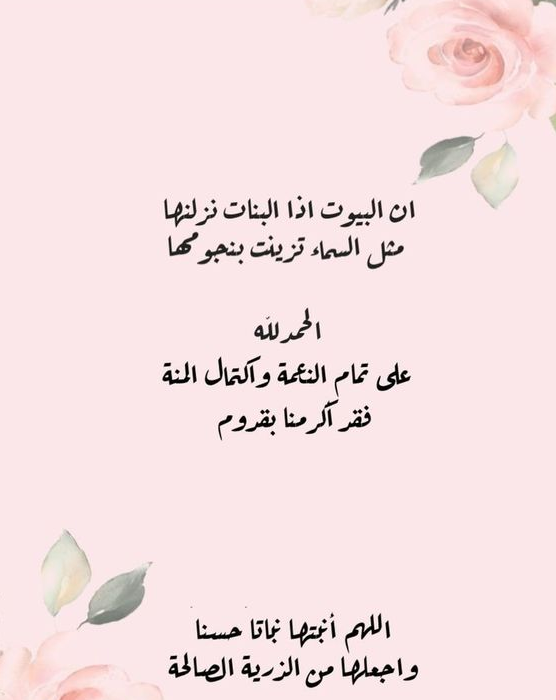 - مبارك لك مولودك، اللهم أنبتها نباتًا حسنًا واجعلها من النابهات الطائعات.