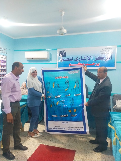 ووجهت مدير وحدة حماية الطفل الشكر للدكتور صبري خالد وكيل وزارة التربية والتعليم بالأقصر، حيث أهدى الوحدة العامة بنرات بمبادئ لغة الإشارة للاستعانة بها بوحدات الحماية مع الأطفال من هذه الفئة.