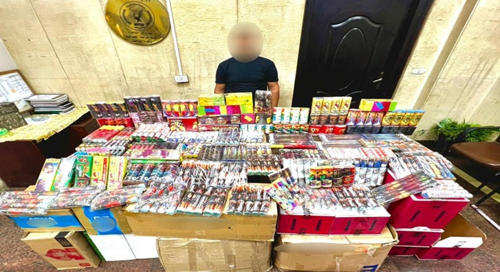 يأتي ذلك في إطار جهود أجهزة وزارة الداخلية لمكافحة الجريمة بشتى صورها لاسيما جرائم الإتجار في الألعاب النارية.