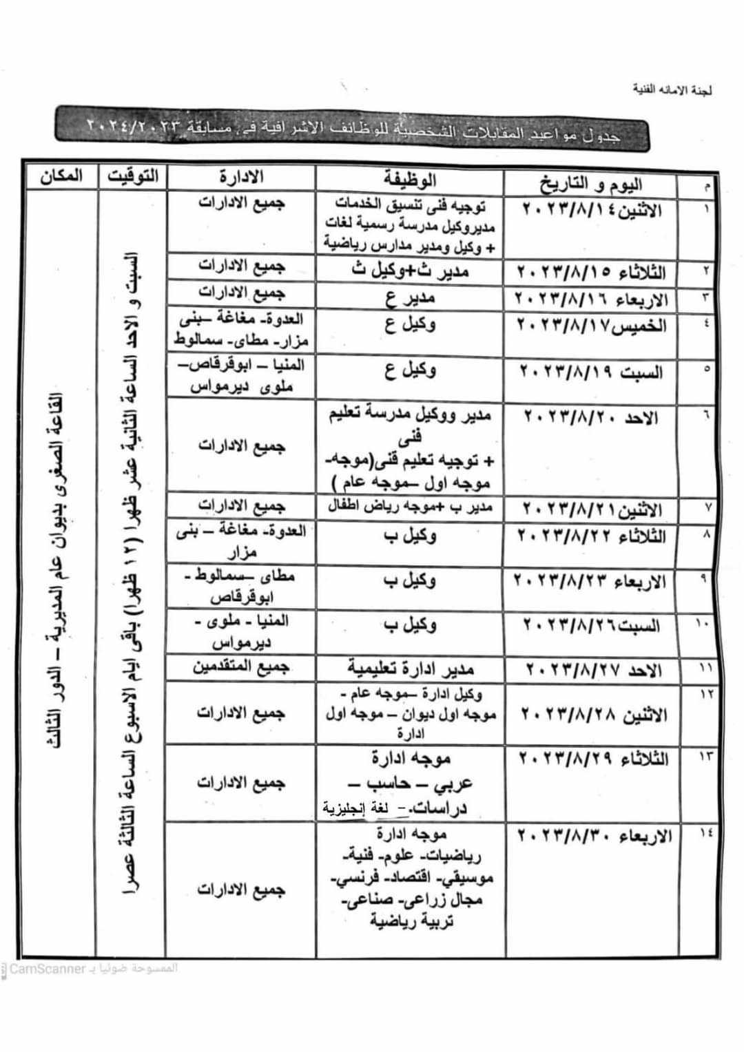 تحديد موعد المقابلات الشخصية للمتقدمين للوظائف الإشرافية بالمنيا