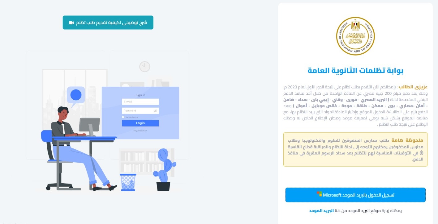 1-على الطالب المتقدم لـ تظلمات الثانوية العامة، تسجيل الدخول عبر بوابة تظلمات الثانوية العامة، من هنـــــــــــــا.
