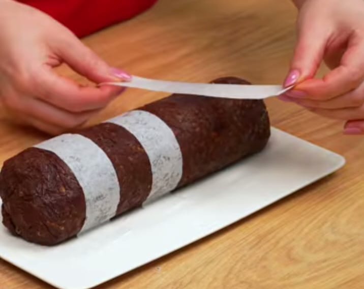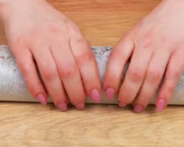- افردي كيس على الرخامة وضعي عليه الليزي كيك ثم شكليه بهدوء وبلف بسيط حتى يأخذ شكلا اسطوانيًا بقاعدة من الأسفل.