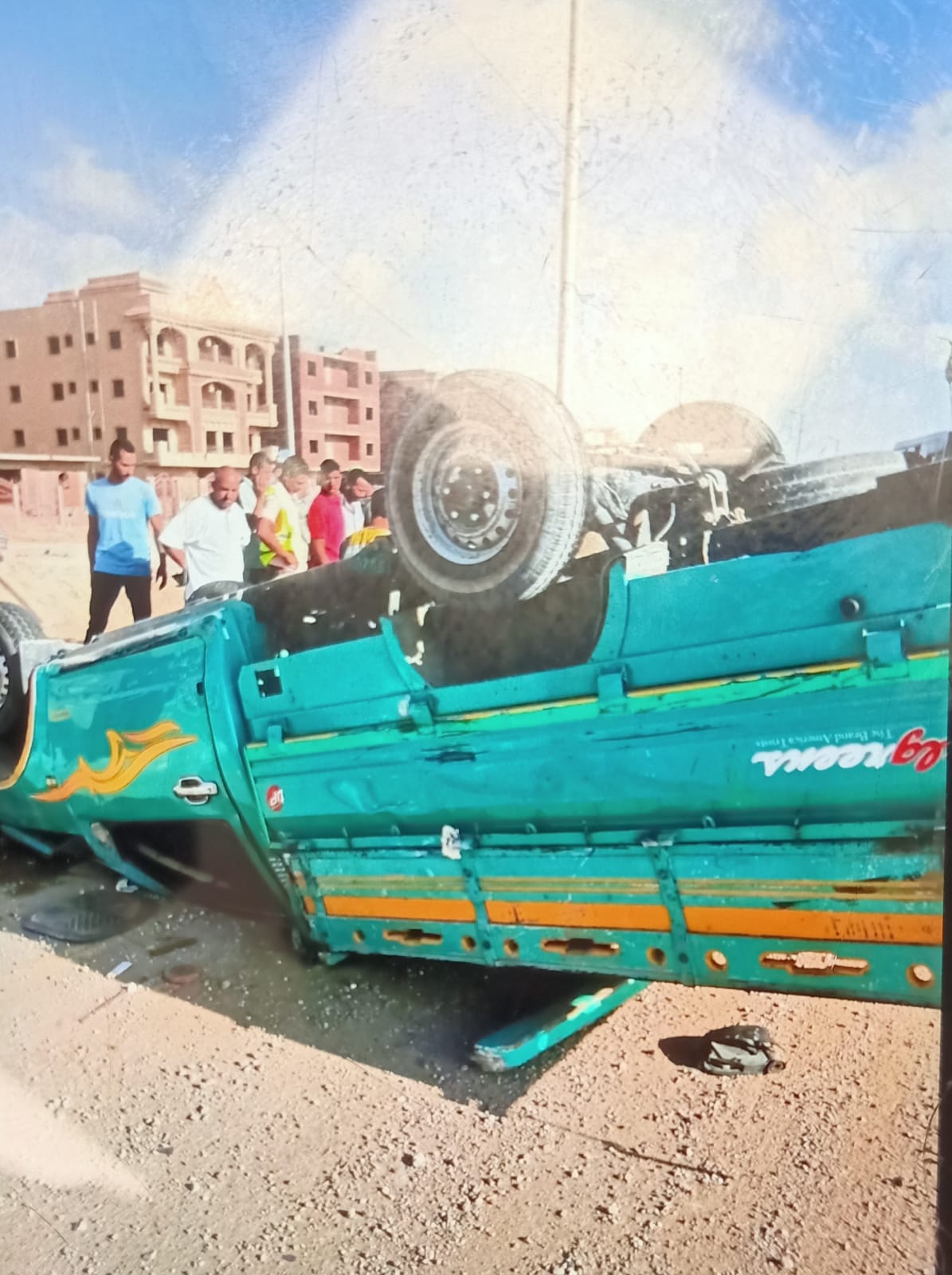 مصرع وإصابة 8 أشخاص في حادث انقلاب سيارة نقل على طريق السويس|صور