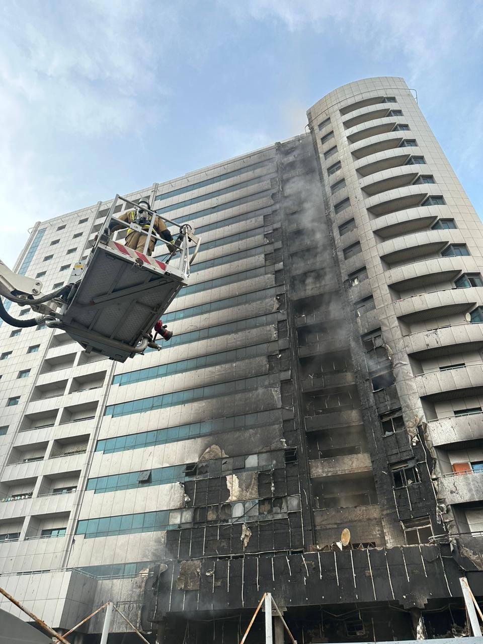 حريق ضخم يلتهم أحد الأبراج السكنية بالإمارات.. والدفاع المدني يتدخل لإنقاذ المدنيين