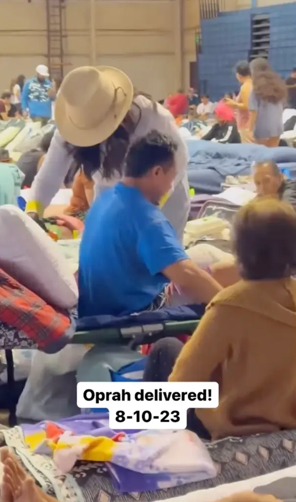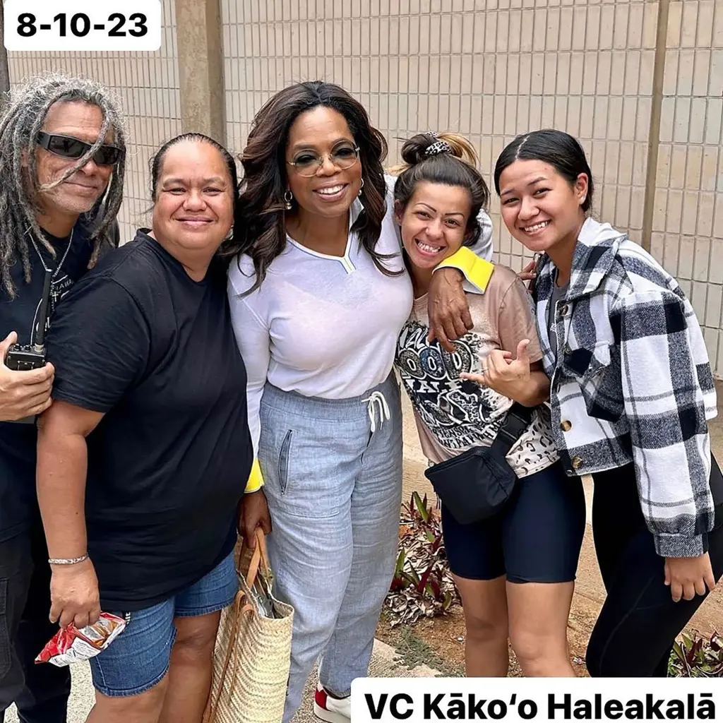 وذكرت صحيفة هاواي نيوز ناو، أن نجمة الإعلام أوبرا وينفري، قدمت المساعدات والإمدادات بنفسها للمتضررين من الحريق، وتحدث مع السكان في ستاد وور ميموريال في الجزيرة التي تم تحويلها إلى ملجأ.