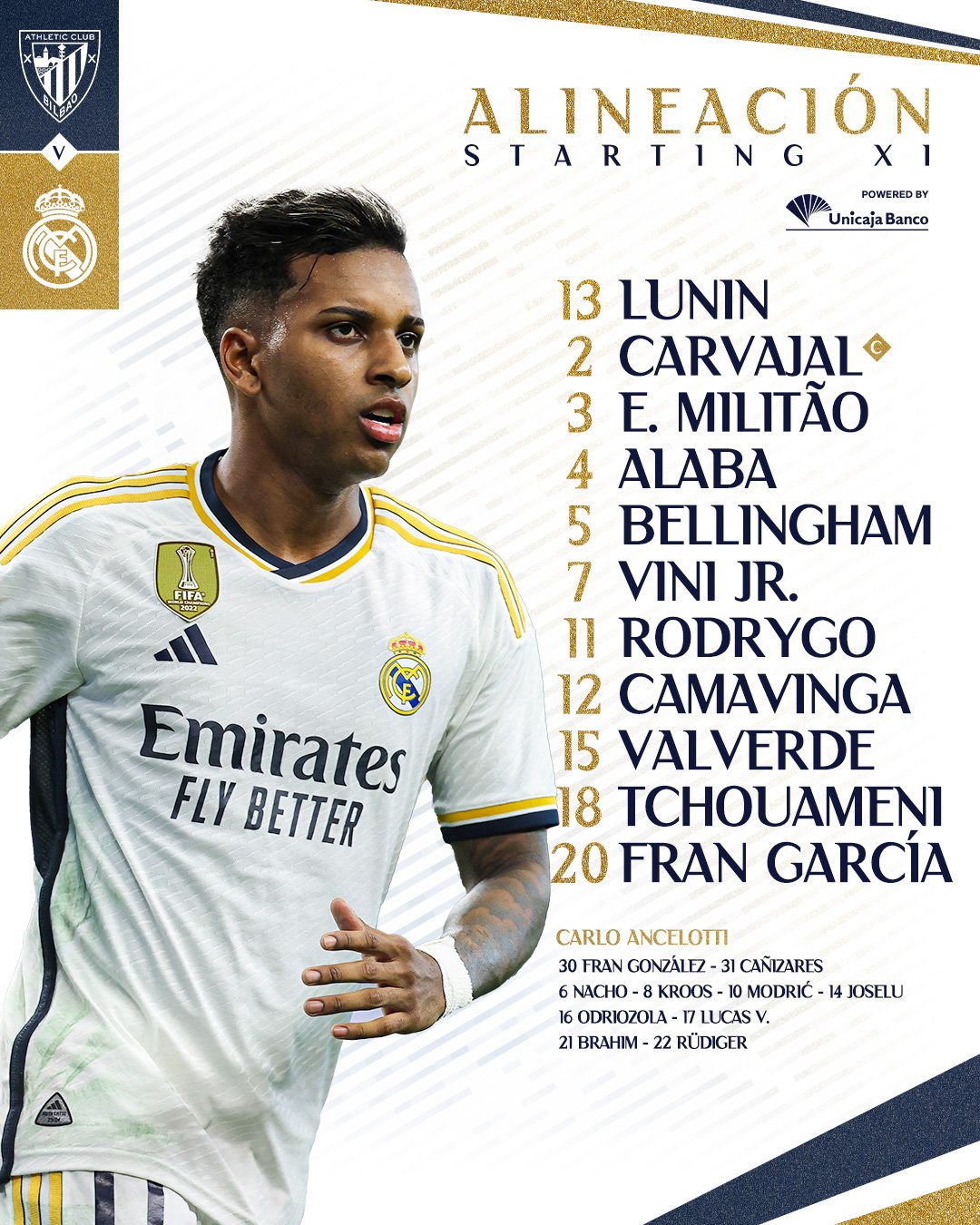 - في خط الهجوم: فينيسيوس جونيور، جود بيلينجهام، رودريجو.