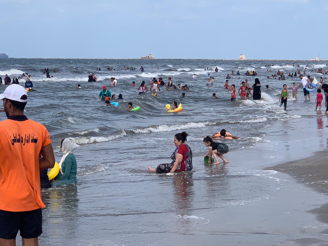 شاطئ بورسعيد يستقبل آلاف المصطافين خلال الصيف وسط تكثيف لفرق الإنقاذ
