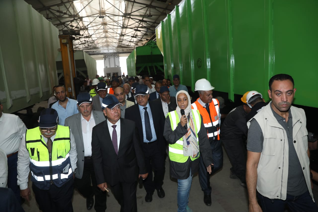 ثم توجه الوزير لتفقد خطوط الانتاج والورش المختلفة بالمصنع ومنها الورش الخاصة بمترو الأنفاق وتجميع الضفائر الكهربائية والتشطيب للمترو، وتجهيز الدهان وقطارات السكك الحديدية والغلال، وقطارات السطح لنقل البضائع، والقلاب، وبواجي القطارات وماكينات التقطيع بالبلازما، بالإضافة إلى هنجر ماكينة التصنيع العملاقة (CNC) بالتعاون مع شركة( DMG MORE )الألمانية العالمية، وتم خلال الزيارة المرور على نماذج من عربات البضائع والغلال وعربات القوى الجارى انتاجها في المصنع لصالح هيئة السكك الحديدية في إطار متابعة العقود المبرمة بين الجانبين مثل عقد تصنيع وتوريد 1000 عربة بضائع مختلفة الطرازات (375 عربة سطح- 300 عربة قلاب- 150 عربة صهريج – 125 عربة صندوق – 50 عربة سبنسة) حيث تسلمت هيئة السكك الحديدية 25 عربة من هذا التعاقد وكذلك متابعة عقد تصنيع وتوريد عدد 75 عربة غلال حيث تم تسليم 25 عربة وجاري تجربة الـ25 عربة أخرى لتسليمها ليعقبها تسليم 25 عربة الاخيرة في هذا التعاقد بعد اجراء تجارب التشغيل الخاص بها وكذلك متابعة عقد تصنيع وتوريد عدد 73 عربة قوى لتشغيل العربات المكيفة الواردة من المجر.