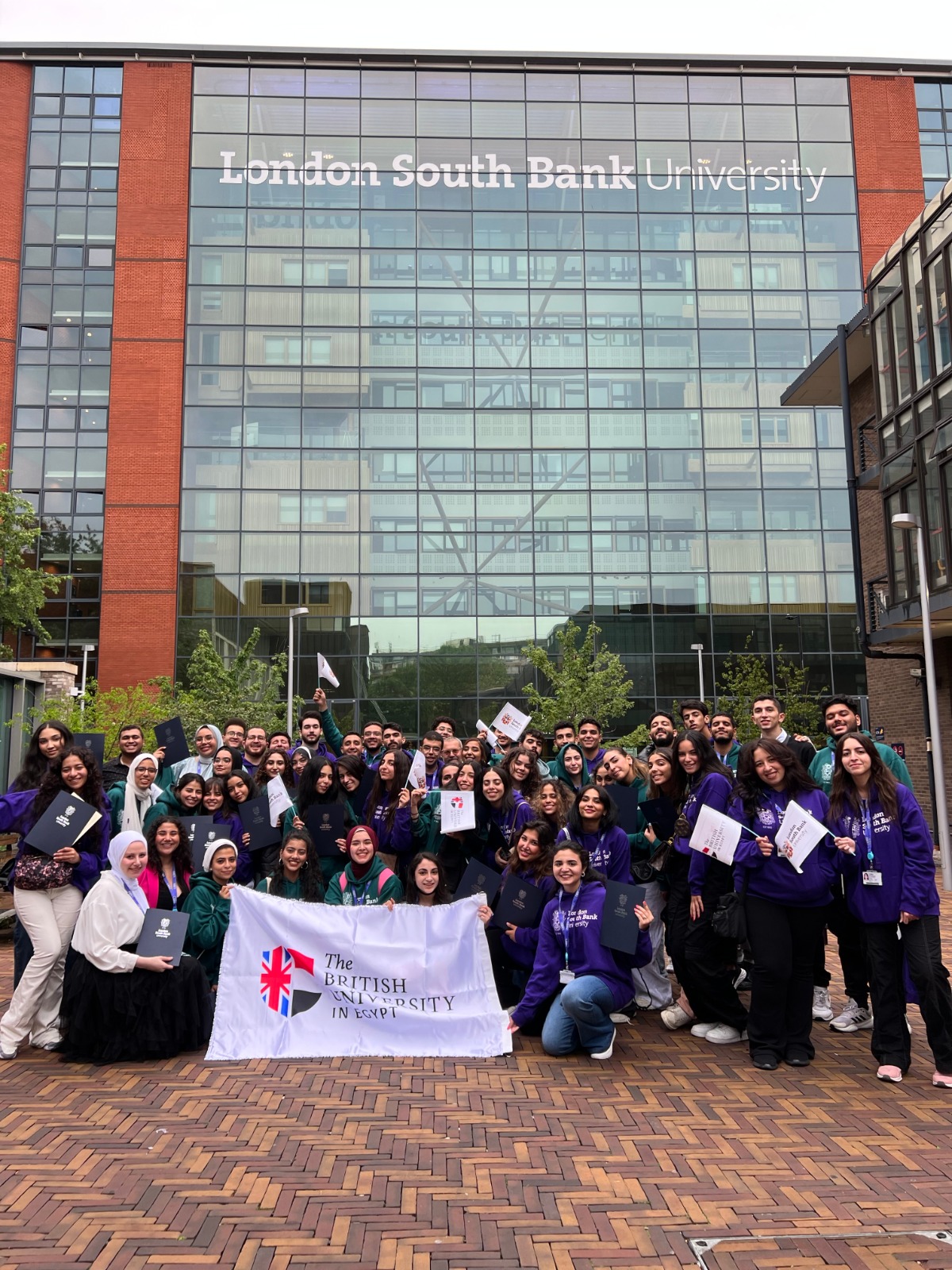 وأوفدت الجامعة البريطانية في مصر 60 طالبًا من كليات الجامعة المختلفة، إلى جامعة لندن ساوث بانك ( LSBU)، الشريك البريطاني للجامعة في إطار الشراكة الممتدة والفعالة بين الجامعة البريطانية في مصر وجامعة لندن ساوث بانك بالمملكة المتحدة، والتي تمنح خريجي الجامعة البريطانية شهادات معتمدة منها بالإضافة إلى الشهادة التي يحصلون عليها من المجلس الأعلى للجامعات المصرية.