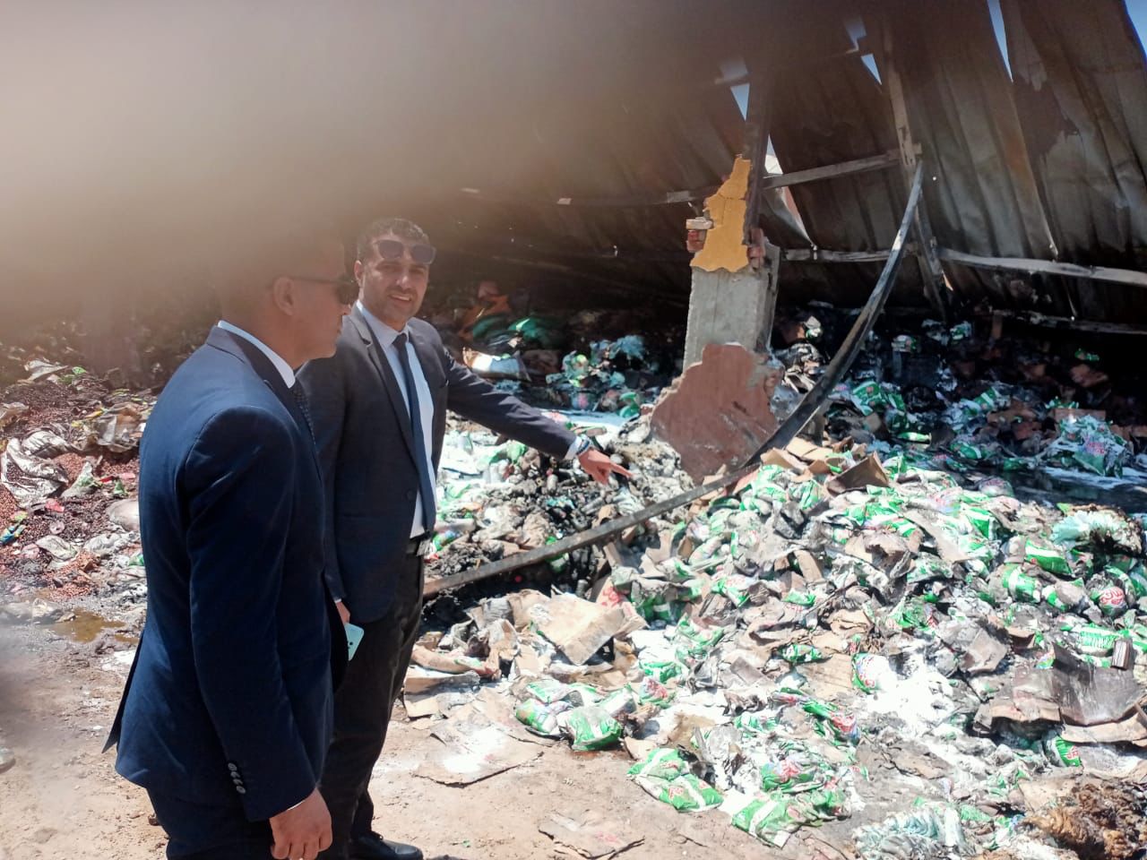 وتبين من المعاينة، أن المخزن مكون من جمالون مقام بأعمدة خرسانية وسقف من الصاج على مساحة 500 متر تقريبًا، وأنه مقام على أرض زراعية تقع خارج الحيز العمراني، وأن اندلاع الحريق بدأ في حوالي الساعة الرابعة فجر يوم الاثنين الموافق14 / 8 / 2023 جرَّاء ماس كهربائي، أتى على محتويات المخزن كلها، والتي ضمت مواد غذائية ومشروبات غازية وزيت طعام مخزنة لإعادة بيعها، قُدرت قيمتها بما يقارب سبعة ملايين جنيه، ولم تقع أية خسائر في الأرواح البشرية، حيث تم السيطرة على الحريق دون أن يمتد لممتلكات أخرى أو عقارات مجاورة لموقع الحادث.