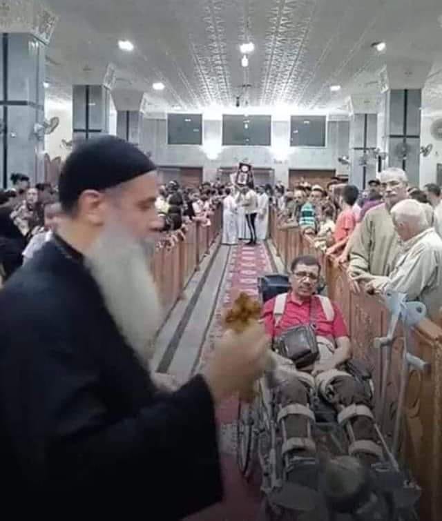 وتابع: هذا الشيء الروحاني هو السيدة العذراء مريم، والذي دفعه للحركة والمشي ونهض من على الكرسي الذي كان يجلس عليه، ومشي ولف الكنيسة كلها زي ما الفيديو بيوري الناس كده.