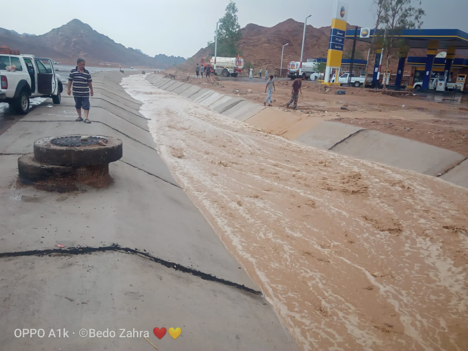 وأكد عبدالبصير أن سيل النبي صالح يسير وفق العمل الصناعي على جانب الطريق الجديد، حتى وصل إلى البحيرات الصناعية المخصصة عن تجميع مياه الأمطار وأن الحالة الجوية مستقرة والحياة طبيعية بالمدينة.