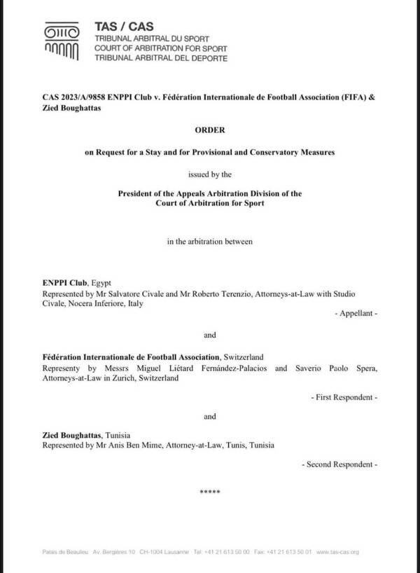 رفضت المحكمة الرياضية الدولية كاس، الطعن الذي قدمه نادي إنبي من أجل إيقاف قرار منع النادي البترولي من القيد، على خلفية قضية التونسي زياد بوغطاس لاعب الفريق السابق.