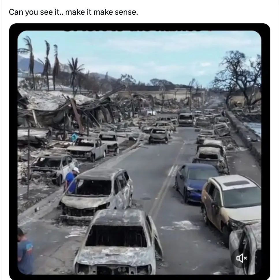 وبعد حدوث حريق جزيرة هاواي، ادعى البعص زيف حرائق هاواي، بسبب أن بعض الأشجار الموجود بالصور لا تزال قائمة وسط آثار الحرائق.