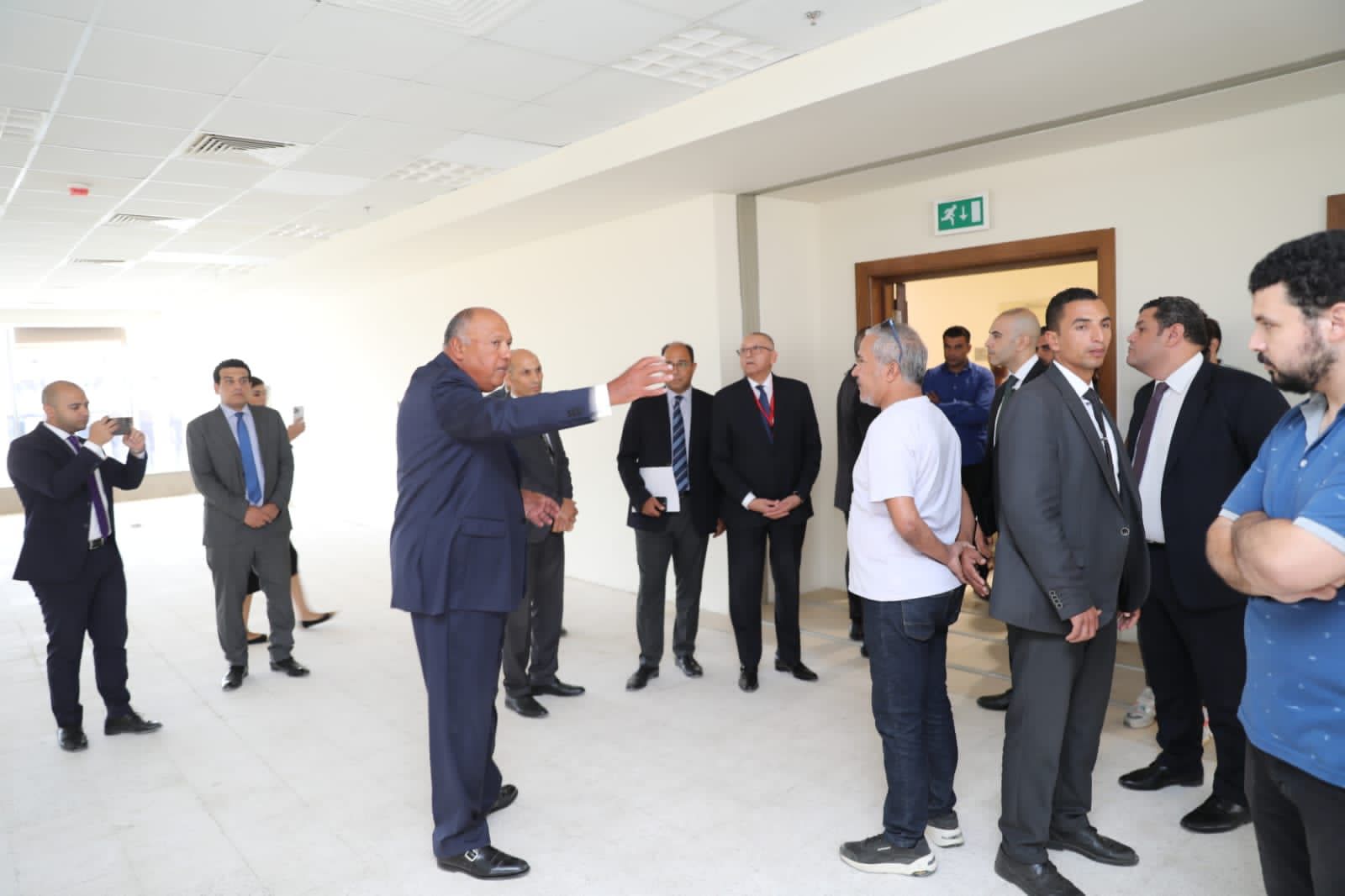 وصرح السفير أحمد أبو زيد، المُتحدث الرسمي ومدير إدارة الدبلوماسية العامة بوزارة الخارجية، بأن وزير الخارجية تفقد الاستعدادات النهائية الخاصة بتجهيز مبنى الوزارة من حيث شبكات المعلومات والاتصالات، وتجهيز غرف الاجتماعات وعملية نقل الأثاث، بالإضافة إلى مكاتب العاملين بالقطاعات السياسية والإدارية والفنية بالوزارة.