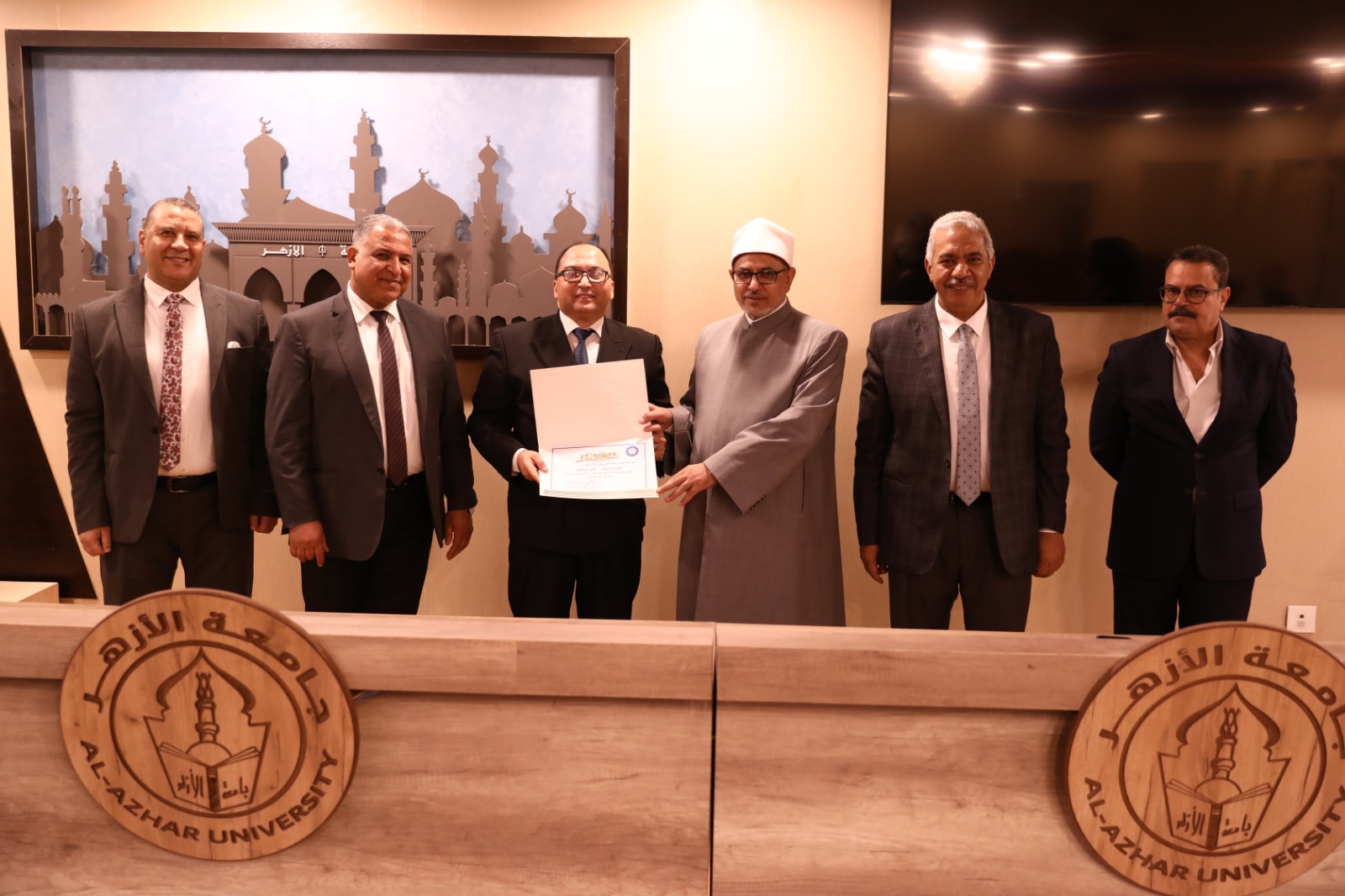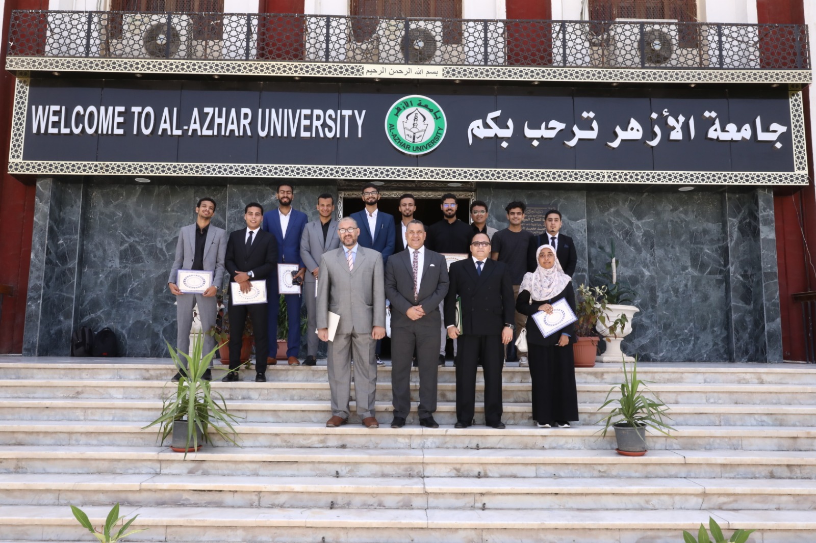 رئيس جامعة الأزهر يكرم طلاب الهندسة لحصولهم على جائزة التميز الدولي