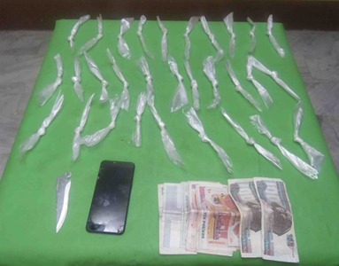 وفي مديرية أمن السويس، تم ضبط 3 أشخاص لاثنين منهم معلومات جنائية وبحوزتهم كمية لمخدر الهيدرو وزنت 6 كجم – كمية لمخدرى الهيروين والأيس "شابو" – سلاح أبيض – ميزان حساس.