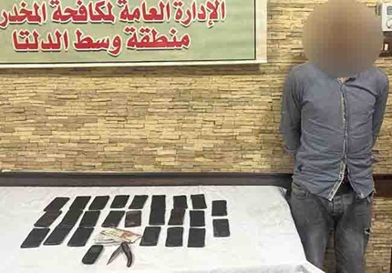 وفي مديرية أمن الإسماعيلية ضبط أحد الأشخاص، له معلومات جنائية، وبحوزته عدد 150 طربة لمخدر الحشيش وزنت 15 كجم.