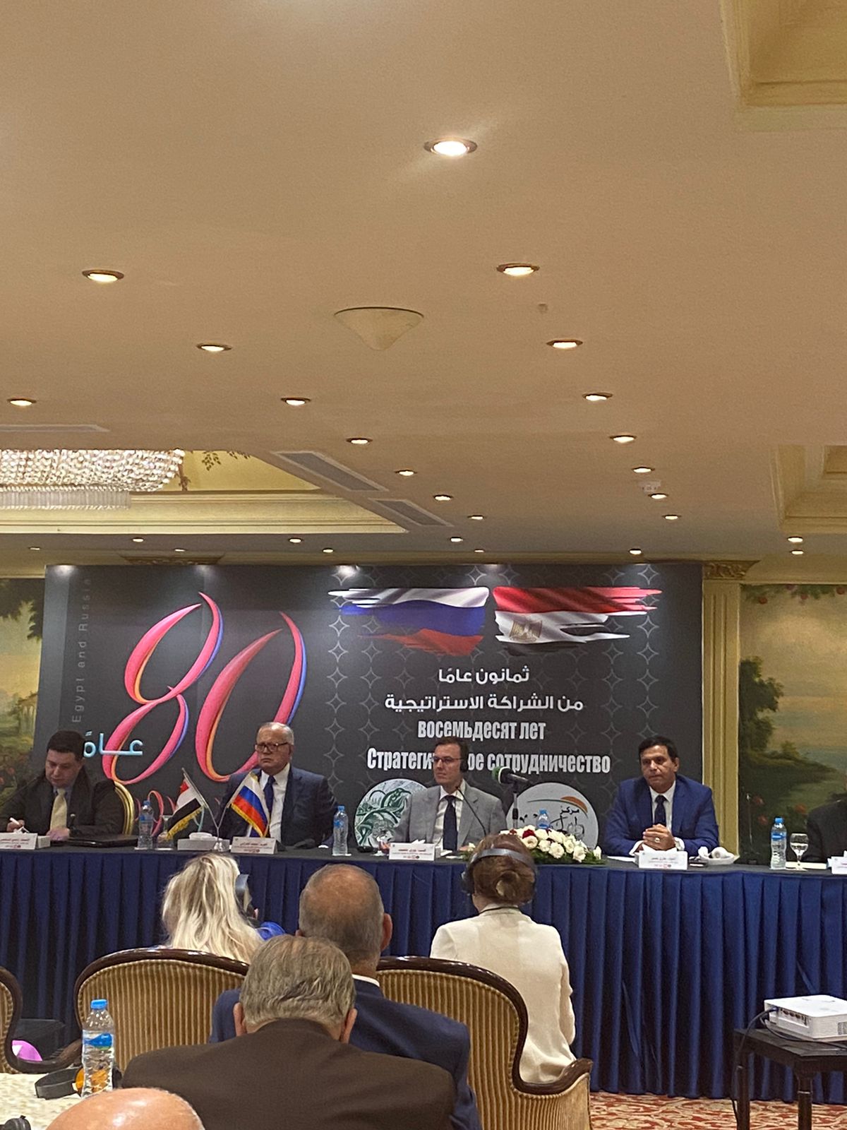 وتابع: ومن أبرز المشروعات التي نفذتها روسيا في مصر هي محطة الضبعة النووية التي يجري العمل فيها على قدم وساق، وكذلك من المقرر افتتاح المنطقة الاقتصادية الروسية في قناة السويس، وهناك حوالي 500 شركة روسية باستثمارات تبلغ قيمتها حوالي 8 مليارات دولار في مصر في كل المجالات، وكذلك تعتبر مصر شريك استراتيجي لروسيا في استيراد القمح الروسي.