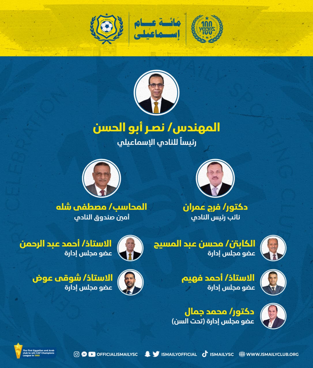 مجلس إدارة نادي الإسماعيلي الجديد برئاسة نصر أبو الحسن