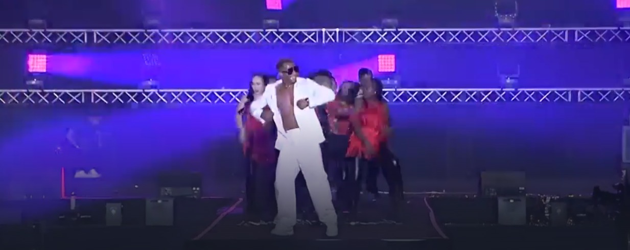 وظهر محمد رمضان بإطلالتين مختلفتين إذ ظهر في بداية الحفل مرتديًا بدلة باللون الأبيض ومفتوحة الصدر، ومن ثم ارتدى قميصًا منقوشًا ومفتوح الصدر، وقدم مجموعة من أغانيه الشهيرة وسط عروض استعراضية، وسط تفاعل كبير من الحضور كما شاركوه الغناء.