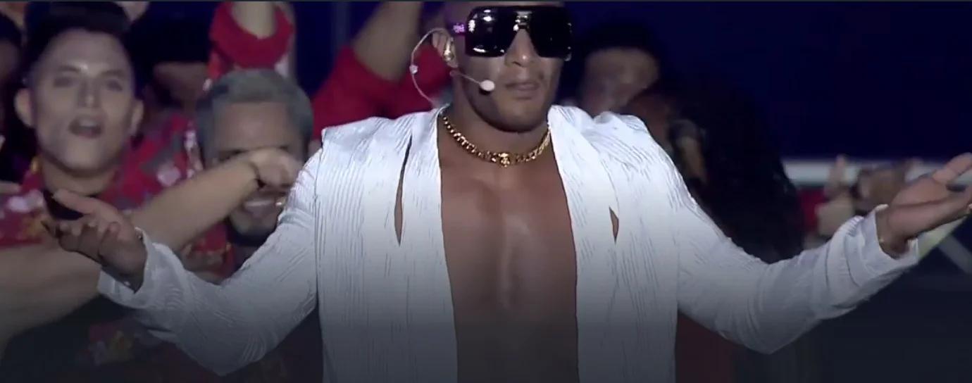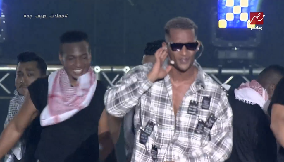 ظهر محمد رمضان بحفله في جدة، عاري الصدر، كعادته في معظم حفلاته الغنائية، حيث ظهر بهذا الشكل في الإطلالتين، أمس، كذلك كما ظهر بتلك الإطلالة في حفله بالرياض، والعديد من حفلاته الأخرى.