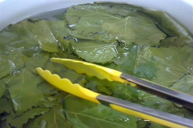 - يوضع ملح مع ماء على أن يوضع ورق العنب في هذا المحلول الملحي لمدة 5 أيام.