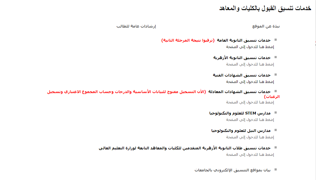 وظهرت بجانب خانة خدمات تنسيق الثانوية العامة، (ترقبوا نتيجة المرحلة الثانية).