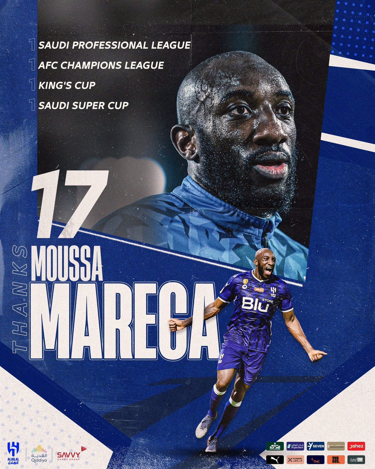 ونشر نادي الهلال السعودي بيانًا رسميًا عبر حسابه على موقع التواصل الاجتماعي تويتر، وجه من خلاله الشكر للمهاجم المالي موسى ماريجا، على ما قدمه للفريق خلال السنوات الأخيرة.