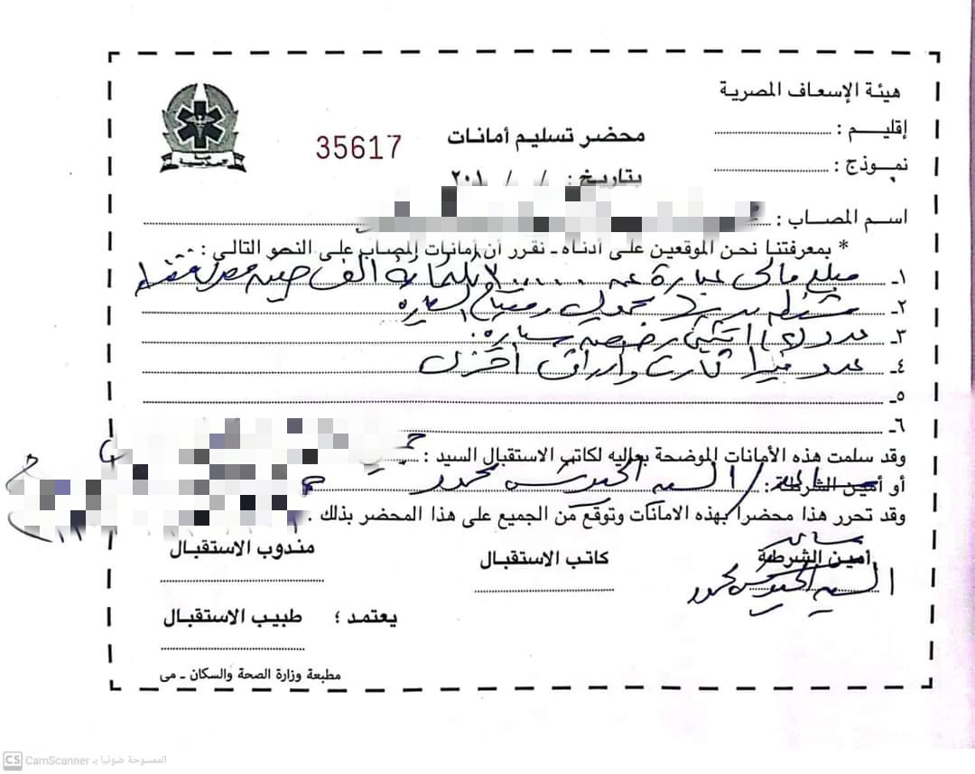 استلم المسعف الحقيبة وتبين أن المبلغ قيمته 298 ألف جنيه، بالإضافة إلى محفظة الشاب الشخصية وبها مبلغ 2000 جنيه، وهاتف محمول ومتعلقات شخصية، وجرى تسليمهم لأسرته داخل نقطة مستشفى جمصة.