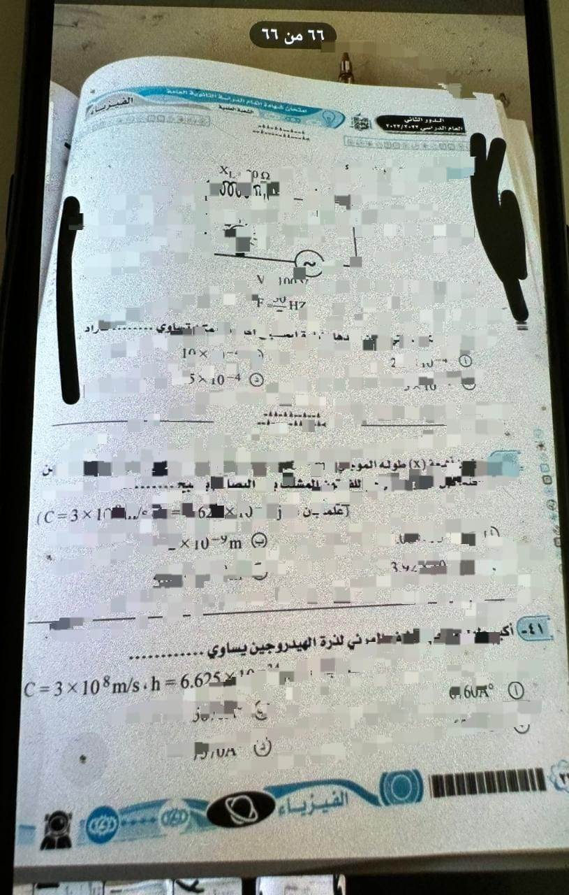 تداول أجزاء مزعومة لامتحان الفيزياء لطلاب الثانوية العامة دور ثان.. والتعليم تتابع