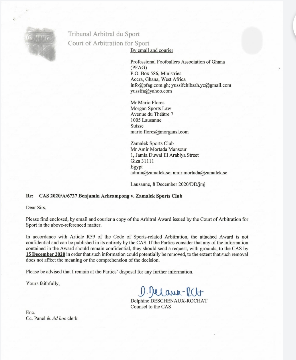 وعلم القاهرة 24، أن المستندات التي ظهرت تؤكد أن اللاعب حصل على مستحقاته المالية ووقع مخالصة بهذا الأمر ولكن أمير مرتضى منصور المشرف العام على الكرة، تقاعس عن حضور إحدى الجلسات عبر الفيديو كونفرانس بين الزمالك واللاعب والفيفا ليطعن أتشمبونج ومحاميه على القضية برمتها.