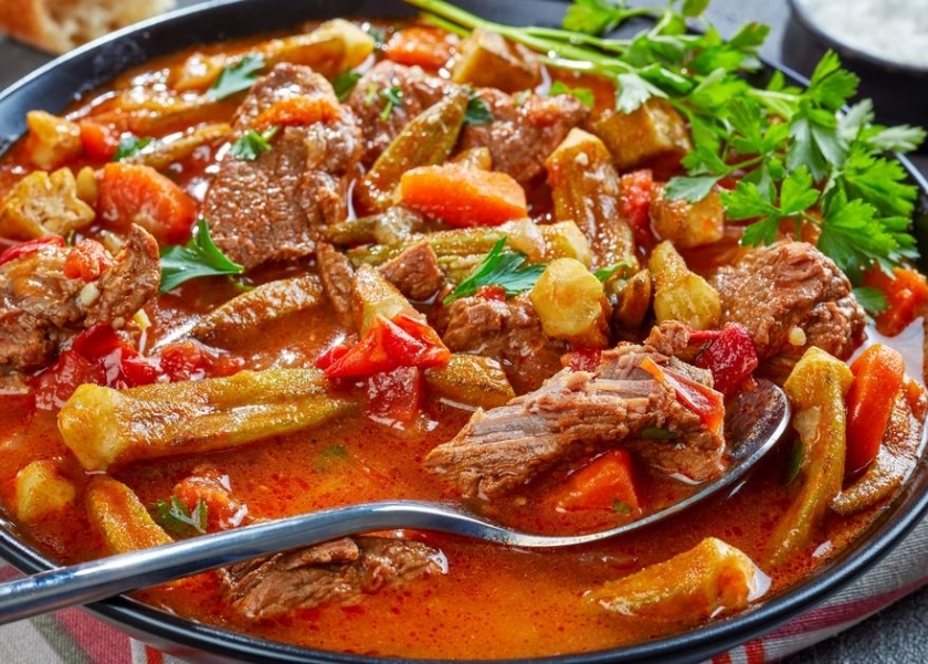 - وبذلك تكون البامية مع اللحمة قد نضجت وجاهزة على التقديم.