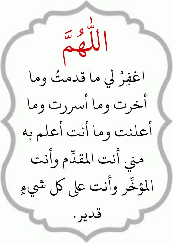 - اللهم انت ربي لا اله الا انت خلقتني وانا عبدك وانا على عهدك ووعدك ما استطعت اعوذ بك من شر ما صنعت ابوء لك بنعمتك عليه وابوء بذنبي فاغفر لي فانه لا يغفر الذنوب الا انت.