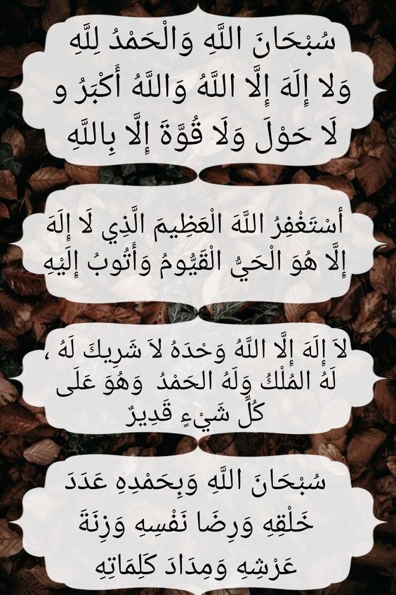 - الحمد لله وسبحان الله ولا اله الا الله والله اكبر ولا حول ولا قوه الا بالله اللهم اغفر لي.