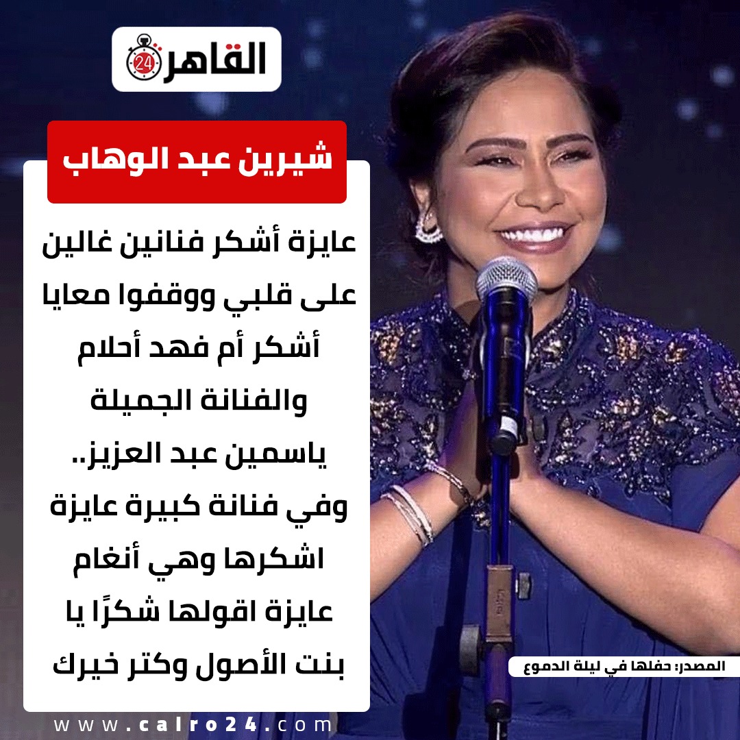 وقالت شيرين عبد الوهاب خلال حفلها في ليلة الدموع: عايزة أشكر فنانين غاليين على قلبي ووقفوا معايا أشكر أم فهد أحلام والفنانة الجميلة ياسمين عبد العزيز.. وفيه فنانة كبيرة عايزة أشكرها وهي أنغام عايزة أقولها شكرًا يا بنت الأصول وكتر خيرك.