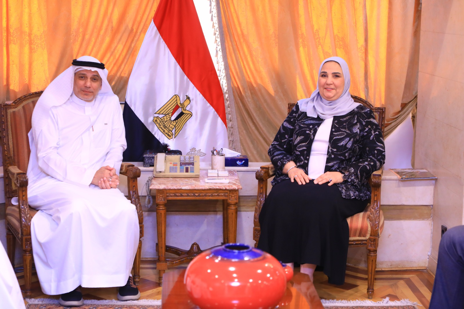 استقبلت نيفين القباج وزيرة التضامن الاجتماعي محمد بن حسن معاجيني رئيس مجلس إدارة الشركة القابضة لمطوفي حجاج الدول العربية في المملكة العربية السعودية، والوفد المرافق له، وذلك بحضور الأستاذ أيمن عبد الموجود مساعد وزيرة التضامن الاجتماعي لشئون مؤسسات المجتمع الأهلي، وذلك لبحث الاستعدادات لموسم الحج المقبل 1445ه- 2024م.