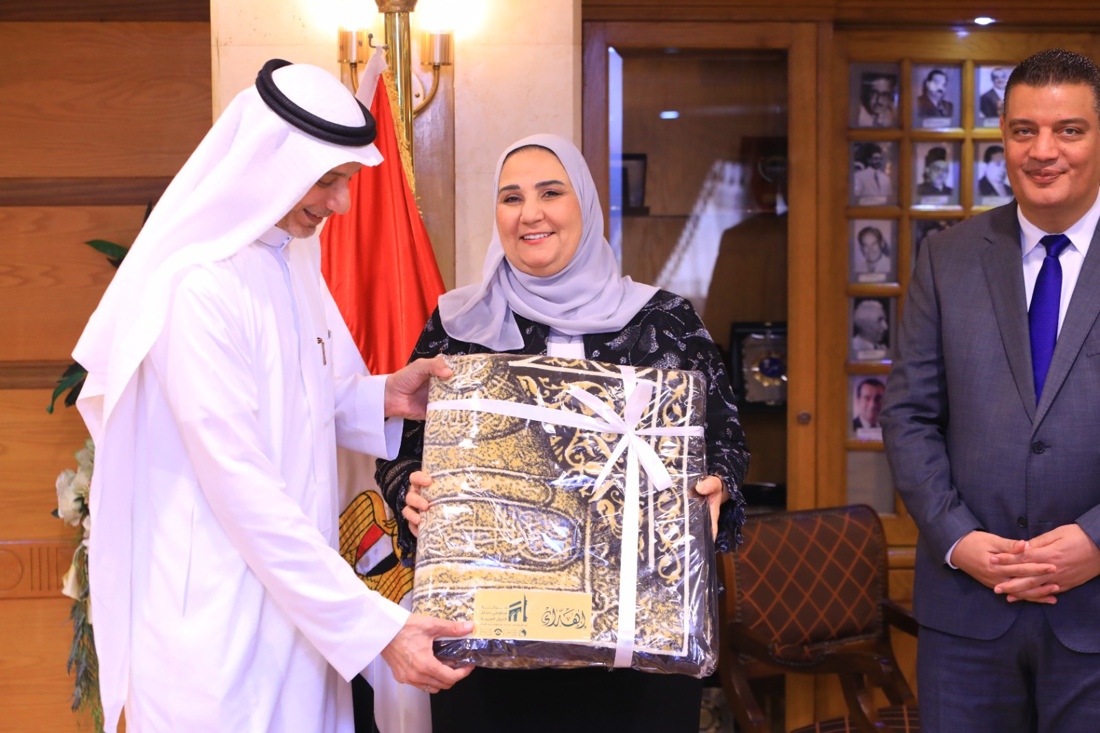 وفي نهاية اللقاء سلمت وزيرة التضامن الاجتماعي درع المؤسسة القومية لتيسير الحج لمحمد بن حسن معاجيني رئيس مجلس إدارة الشركة القابضة لمطوفي حجاج الدول العربية بالمملكة العربية السعودية والوفد المرافق له؛ تقديرًا لجهودهم في تنظيم مراسم الحج والتعاون الدائم والمثمر مع وزارة التضامن الاجتماعي.