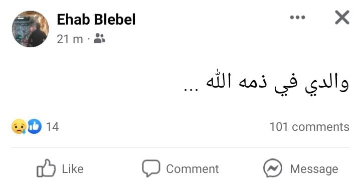 وكتب إيهاب بليبل عبر حسابه على فيسبوك، الآتي: والدي في ذمة الله.