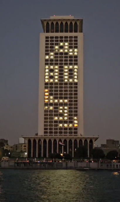 أنارت وزارة الخارجية المصرية مبناها احتفالا بالذكرى الـ 80 لتأسيس العلاقات الدبلوماسية بين مصر وروسيا وكتبت عبارة (مصر 80 روسيا).