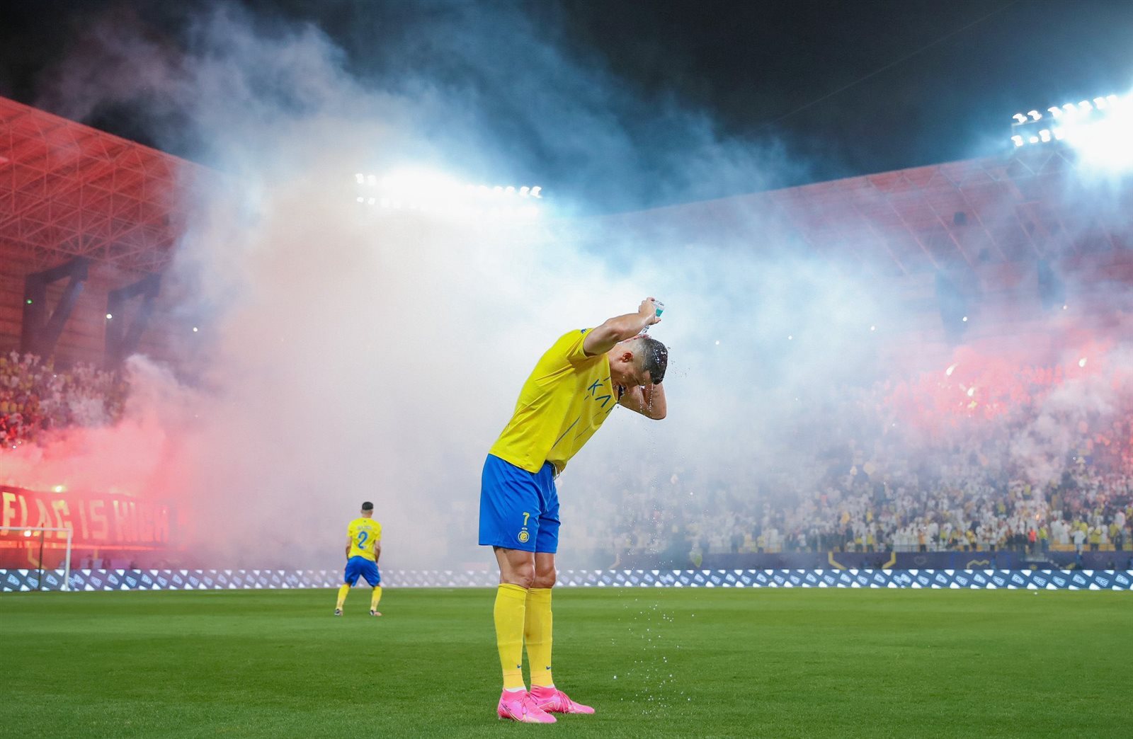 وفي الدقيقة 55 من عمر اللقاء، أحرز النجم البرتغالي كريستيانو رونالدو هدف فريق النصر الثالث.