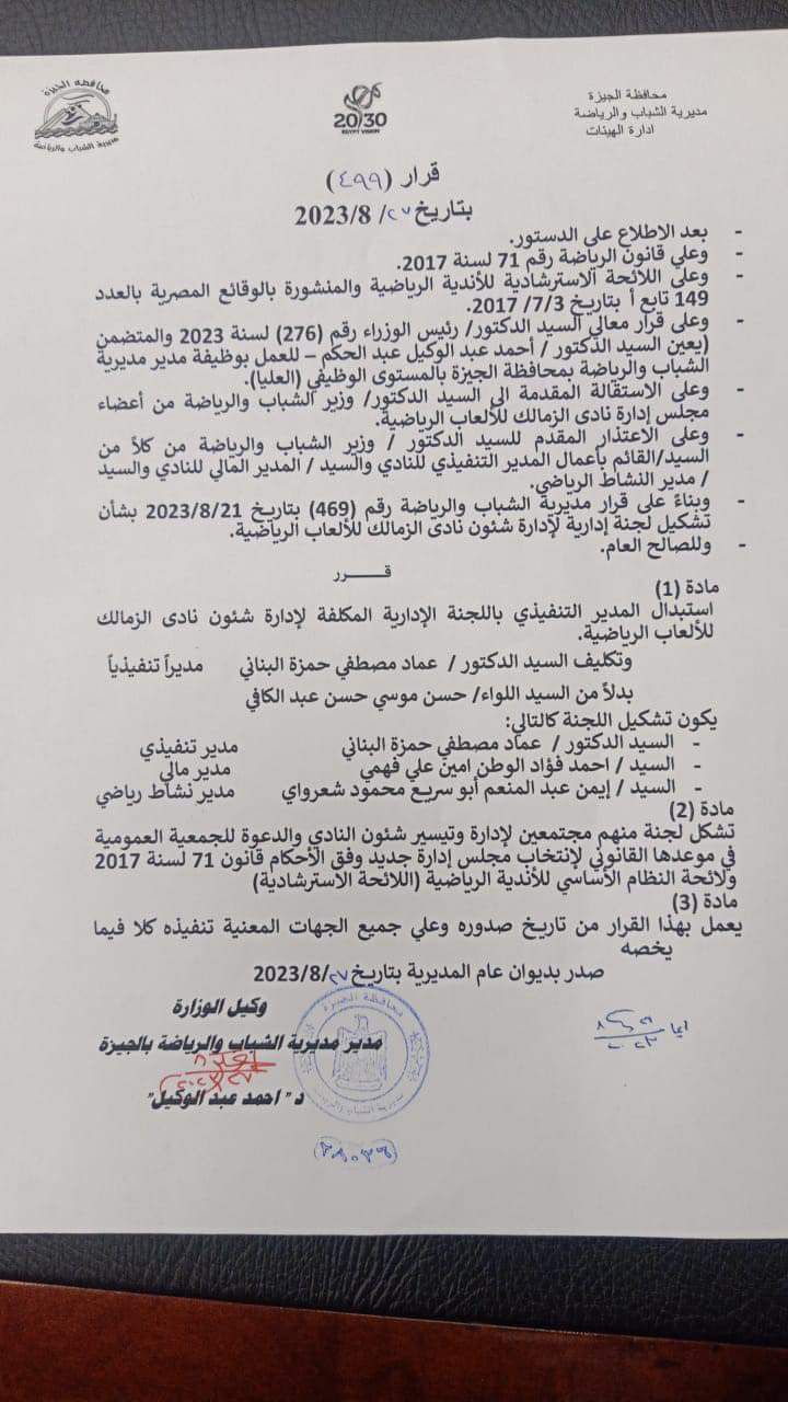 عماد البناني مديرا تنفيذيا للزمالك بدلا من حسن موسى | مستند