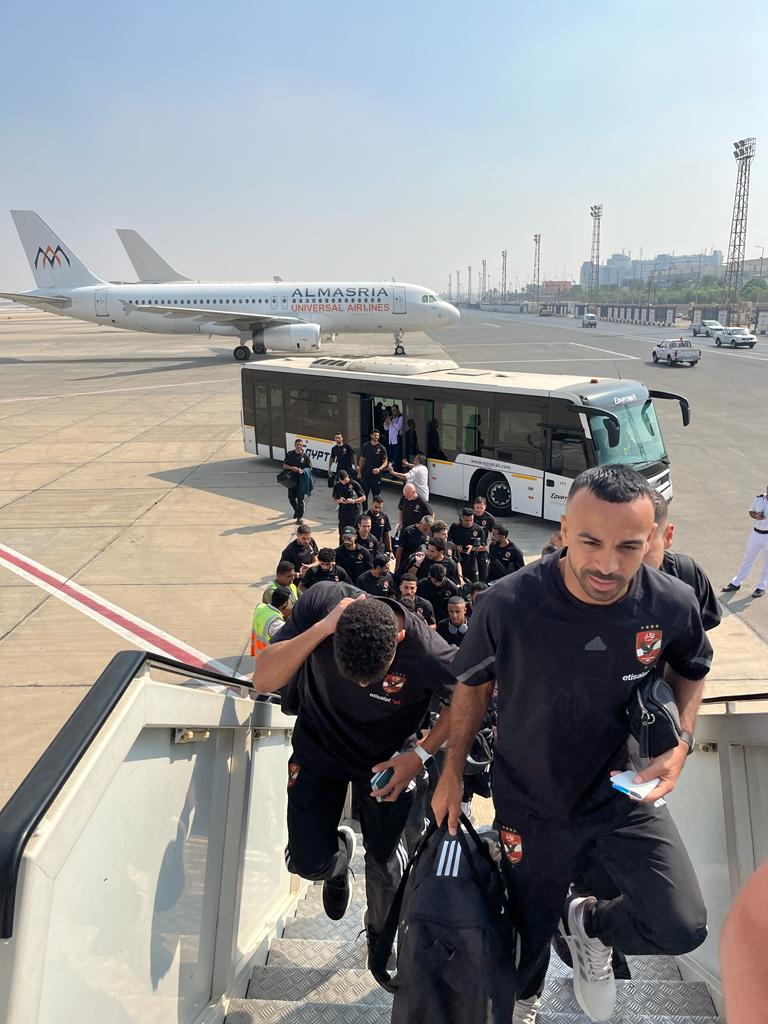وأقلعت طائرة مصر للطيران وعلى متنها بعثة النادي الأهلي من مطار القاهرة الدولي، وسط إجراءات ميسرة من فرق عمل مصر للطيران.