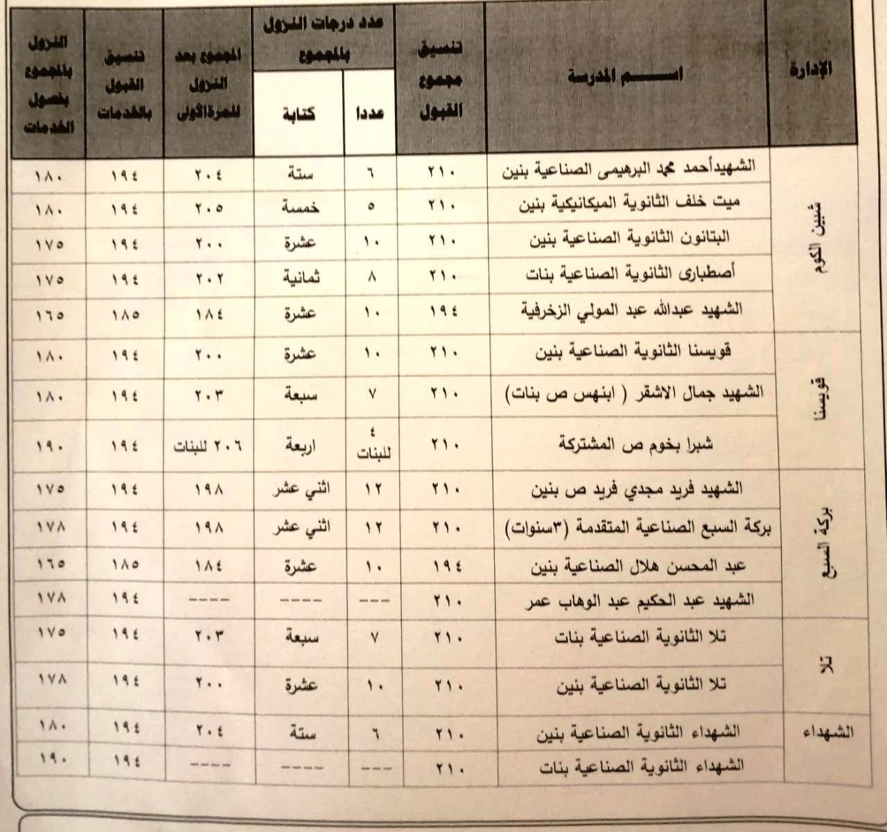 وافق اليوم اللواء إبراهيم أبو ليمون محافظ المنوفية، على النزول بدرجات القبول في بعض المدارس الفنية للعام 2023 - 2024 عام خدمات بمختلف نوعياتها صناعي - زراعي - تجاري - التعليم والتدريب المزدوج، وذلك لاستكمال الكثافات الطلابية بعدد من المدارس، بكافة الإدارات التعليمية بنطاق المحافظة ووفقا لأعداد المتقدمين.